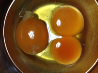 朝、お弁当を作ろうと卵を2個割ると