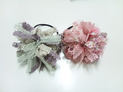 「可愛いリボンを使ってボンボンヘアゴムを作ってはどうかと・・・可愛いんですけど、超簡単にできるので小学生の子でも大丈夫かな・・・って。でもこれだと女の子しかできないのでやっぱり男の子も作れるのがいいかな・・・・と思ったんですけど私ができるのは手芸だし、でも女の子でも括れる長さじゃないとヘアゴムって意味がないし・・・・・