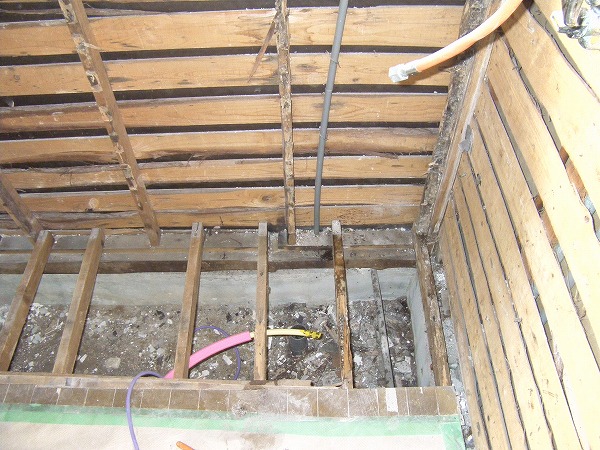 台所の壁・床・天井を解体していきます。