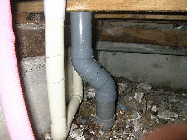 お湯・お水・そして台所排水の配管工事をします。