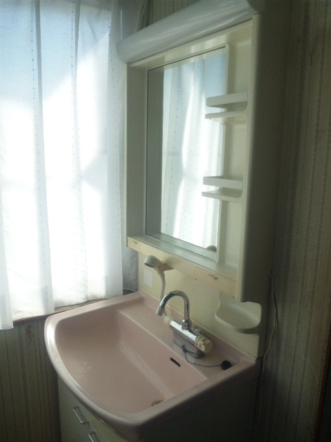 既設の洗面化粧台を外します。
