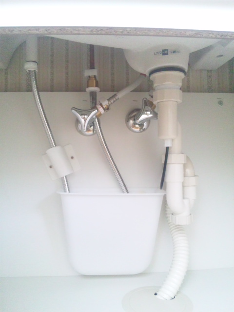 新しいカランと交換すると共に、シンク下の配管も交換します。