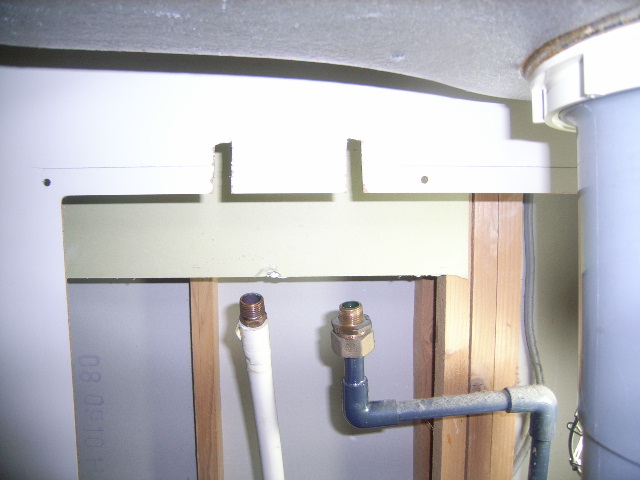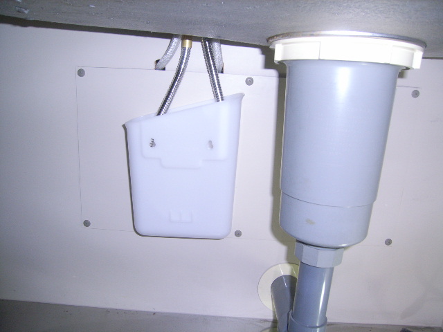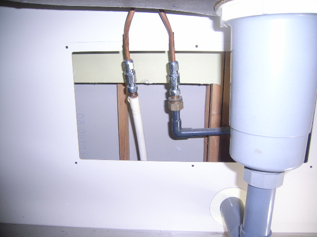 ↓↓化粧カバーを外しました。既設配管 左:湯 右:水