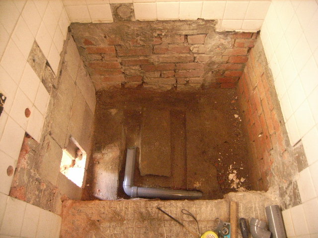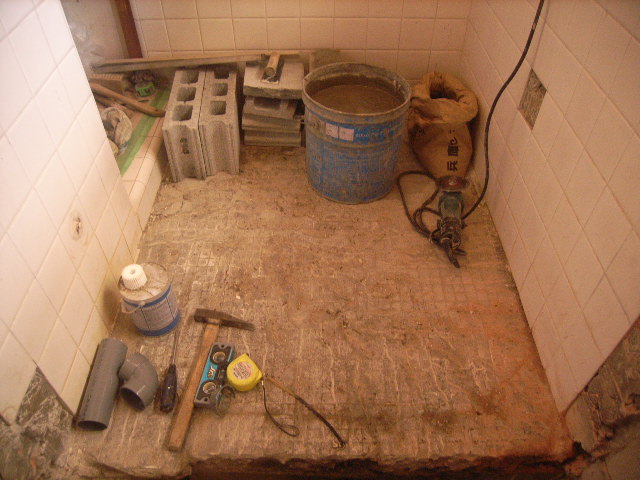 床のタイルも水はけが良いように、勾配をつけるため剥がしました。