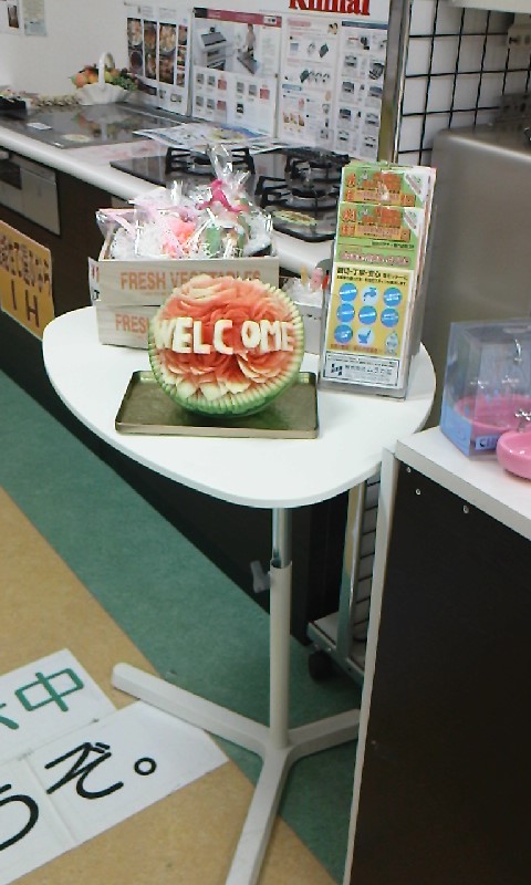 昨日の日曜日にイオン店でスイカを彫るデモンストレーションを行ってみました。