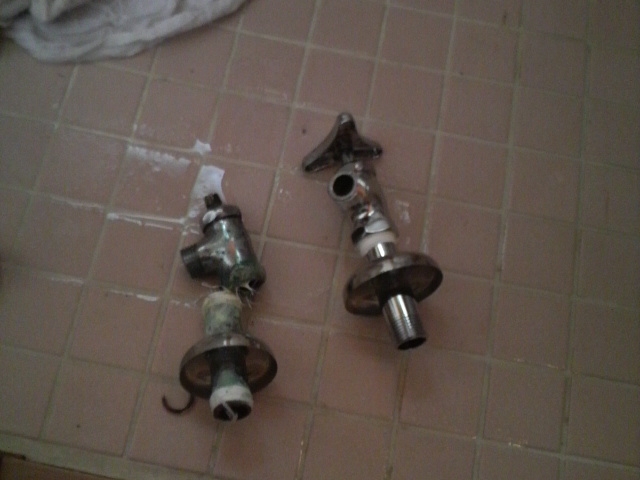 以前より水漏れがポタポタとしていたそうで、様子を見ようと水道管を触ったところ折れてしまい、水が噴出してきたそうです。