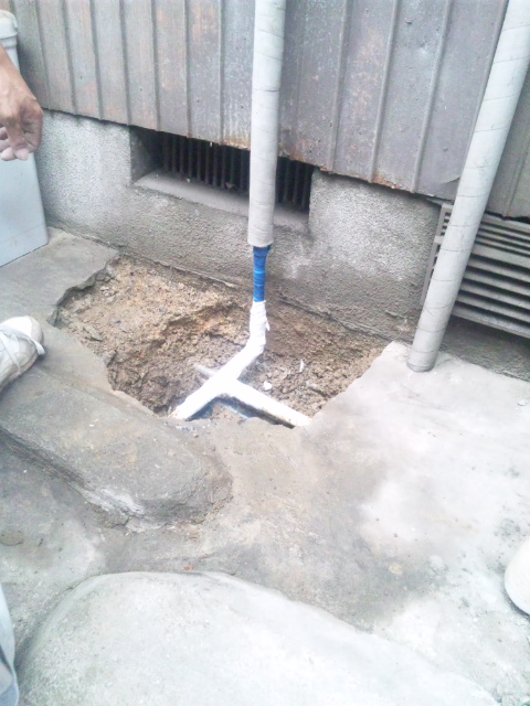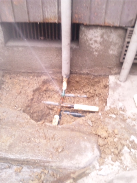 コンクリの下での水漏れです。