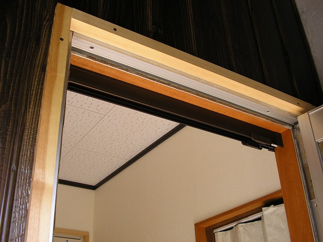 施工後③ 戸当り設置 アルミ扉が勢い良くバタンと閉まらないようにしました。