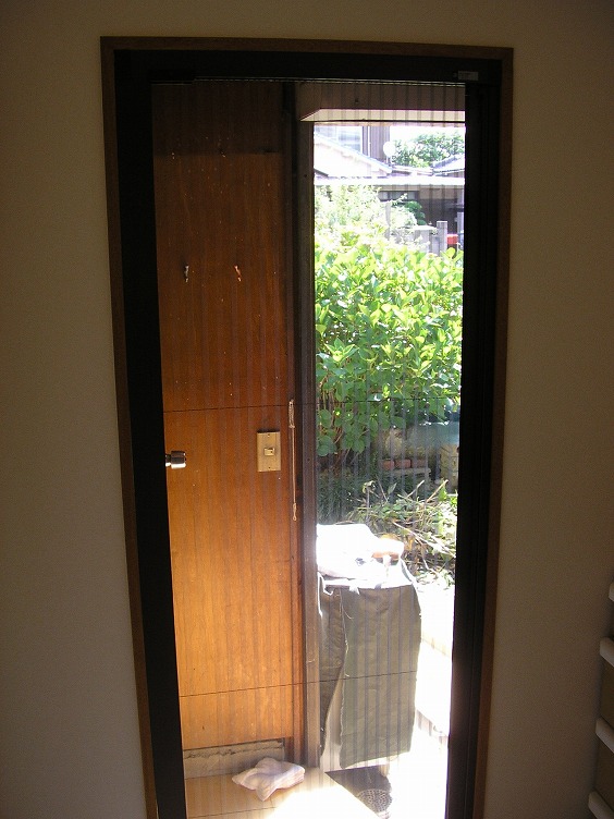 浴室の勝手口に網戸を設置して欲しいと依頼がありました。