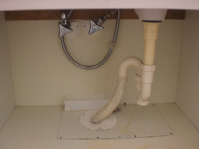 洗面化粧台から水漏れがするとの事でサティ店にご相談にこられました。