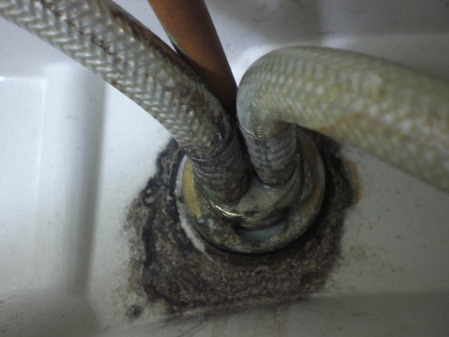 最後に水漏れ確認をしたところ、洗面台のカランの根元部分より水漏れを発見。お客様に現状をご報告し、カランの取替えをご希望でしたので、カランを取寄せいたしました。
