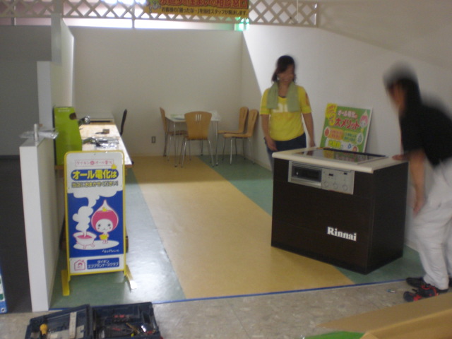 右側はメインで売り出していきたい商品 ガスコンロ・IHクッキングヒーターに変わる第三の調理機器「スーパーラジエントヒーター」を展示いたします。