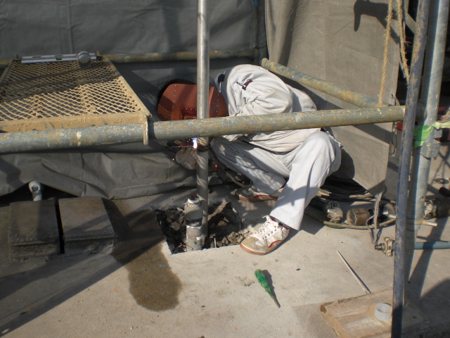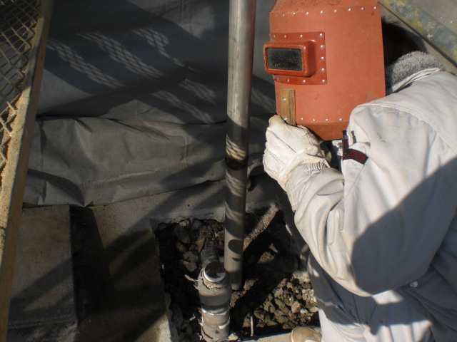 1本目の管がある程度地中に入ったら2本目と繋ぎ合せるために