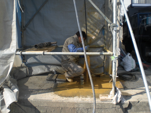弊社のポンプを使用し綺麗な水が出るまで汲み上げていきます。