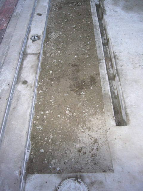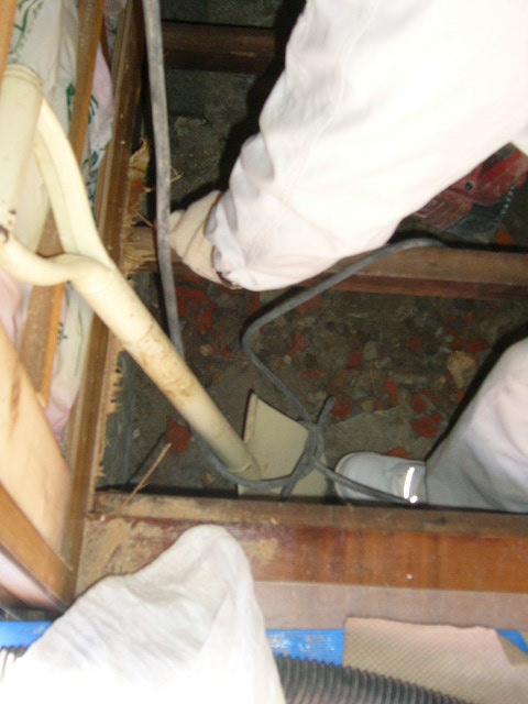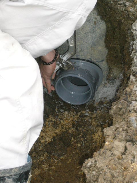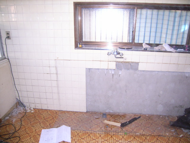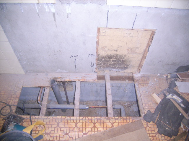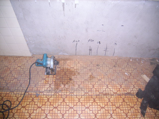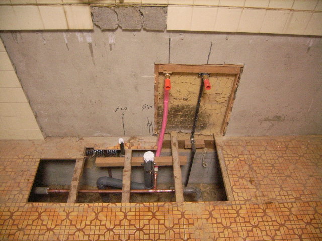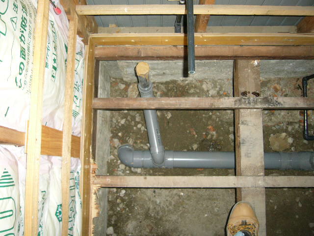床を取り壊して、外部から引いてきた排水管を繋げます。