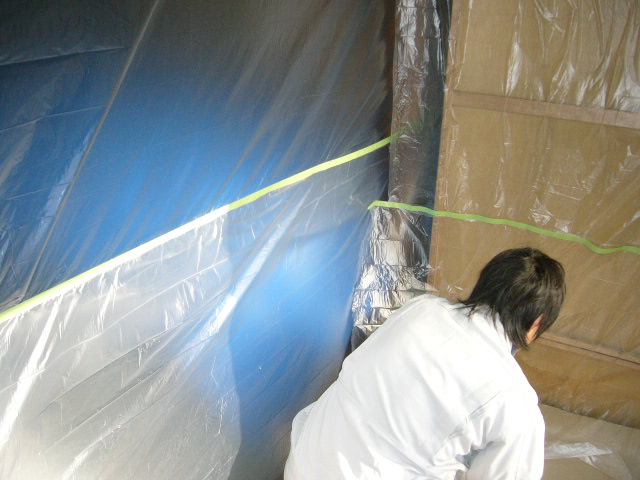 周囲にゴミが飛び散らないように、又傷つけない為にも養生いたします。
