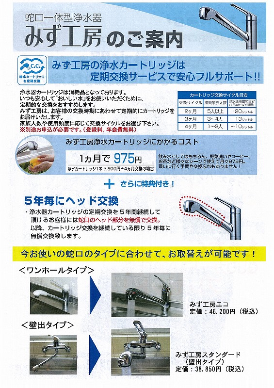 2)5年ごとに浄水器本体の無償交換