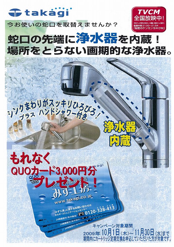みなさまはTVでtakagiの浄水器カランのCMをご覧になられたことはございますか?