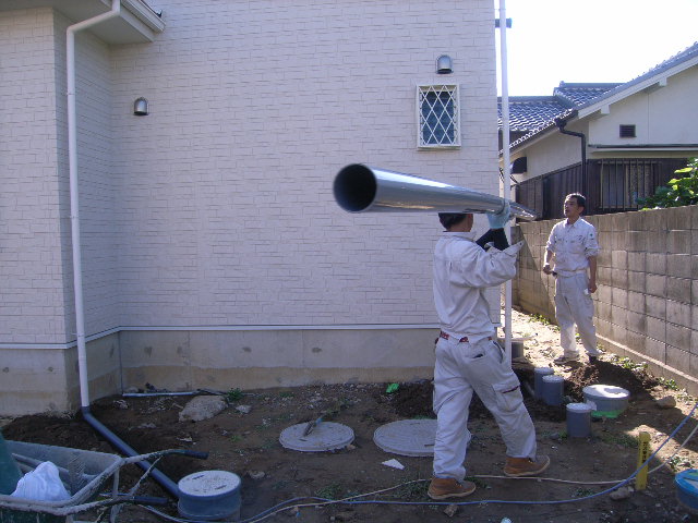 今回は新人くんとベテランさんというペアで新築のお宅の雨樋⇒桝付けのお仕事を