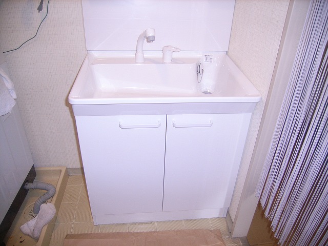 新しい洗面台。ずいぶんと洗い場が大きくなりました!!